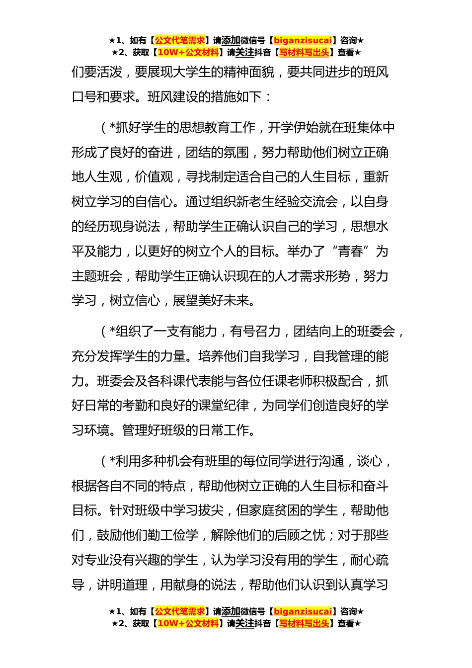 ★1、如有【公文代笔需求】请添加微信号【biganzisucai】咨询★★2、获取【10W+公文材料】请关注抖音【写材料写出头】查看★**年职业学校工作总结报告职业学校工作总结和工作计划(*)职业学校工作总结报告职业学校工作总结和工作计划篇一做兼职辅导员工作已经两年了,虽然是兼职的,但我感到辅导员工作责任真的很重大,并且通过锻炼,使自己的管理、沟通等各方面能力都有了提升,是一次难得的锻炼自己综合能力的机会。自从担任*会展*和*物流管理*的辅导员以来,按照辅导员的规章制度要求自己,一直努力做好辅导员的工作。首先从班级学生的学习、思想特点入手,加强思想教育,并积极组织参加各项院校活动,发挥本班特长,以勤补拙,虽然两个班级专业不同,学生性格不同,班级气氛不同,但两个班级在各项活动和学习中...