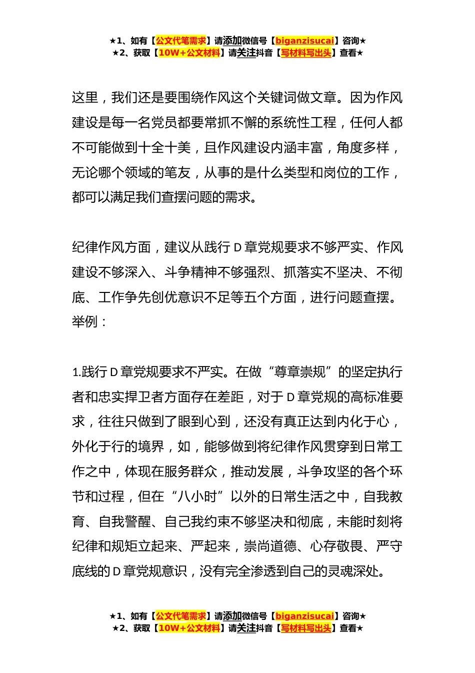 关于上度组织生活会“纪律作风”方面问题起草指南、实例和素材