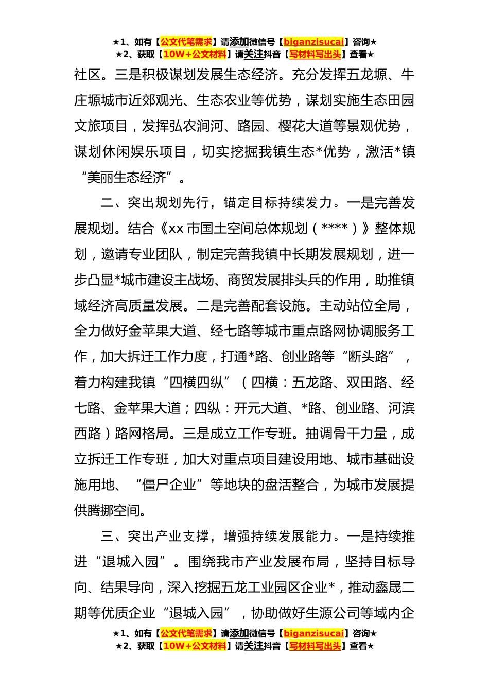 ★1、如有【公文代笔需求】请添加微信号【biganzisucai】咨询★★2、获取【10W+公文材料】请关注抖音【写材料写出头】查看★镇党委书记**年乡村*专题培训班交流发言(**)按照组织的统一安排,*XX日至XX日,我有幸到中国改革开放的前沿、“千万工程”的起点、“两山理论”的发源地——**,参加xx市乡镇党政正职乡村*专题培训,从远距离感悟“两山”理论伟力、学习“千万工程”先进经验,到近距离触摸*乡村翻天覆地的巨大变化。总体感觉,*的乡村*建设,呈现五个特点:一是发展理念超前,二是产业结合紧密,三是农民参与度高,四是体制机制完善,五是干部拼搏实干精神足,真正实现了“生态环境就是生产力”、“打造良好生态环境就是发展生产力”这个目标。*优越的区位优势、雄厚的经济基础固然让人羡慕,但其先进的...