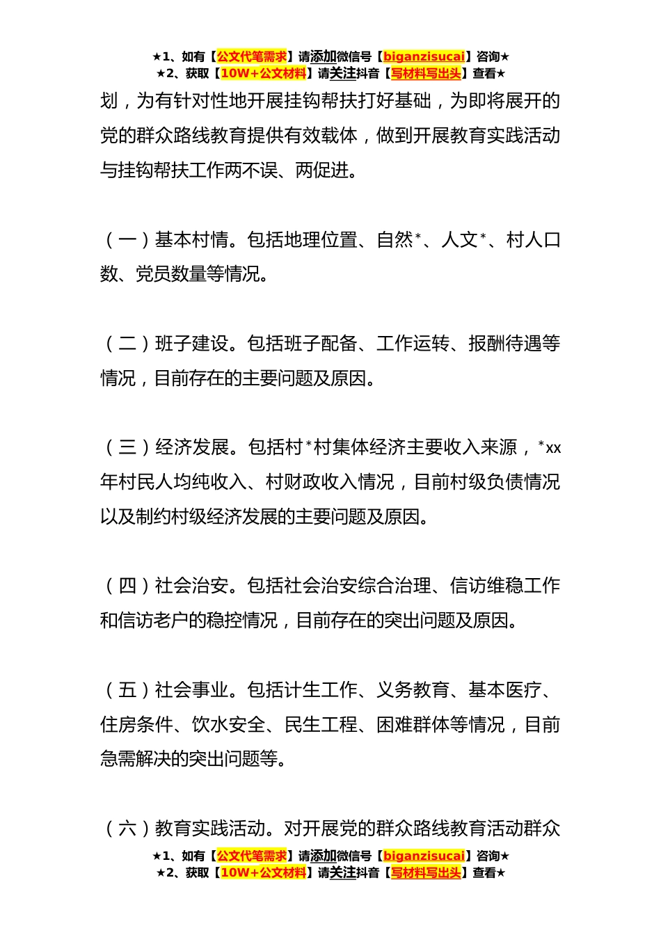 ★1、如有【公文代笔需求】请添加微信号【biganzisucai】咨询★★2、获取【10W+公文材料】请关注抖音【写材料写出头】查看★村庄调研方案村镇调研提纲汇编(*)“方”即方子、方法。“方案”,即在案前得出的方法,将方法呈于案前,即为“方案”。怎样写方案才更能起到其作用呢?方案应该怎么制定呢?以下是我给大家收集整理的方案策划范文,供大家参考借鉴,希望可以帮助到有需要的朋友。村庄规划调研方案村调研提纲篇一把驻村蹲点调研作为机关干部了解基层情况、改进作风的重要举措,通过机关干部与基层党员群众同吃同住同劳动了解真实情况、倾听群众意见、培养群众感情、切实转变作风,为开展支持高峰村加快发展出谋献策。通过调研,全面掌握高峰村的村情民风、班子建设、经济发展、社会治安、社会事业等方面的情...