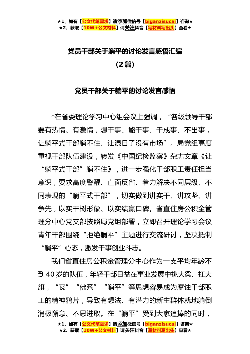 (2篇)党员干部关于躺平的讨论发言感悟汇编