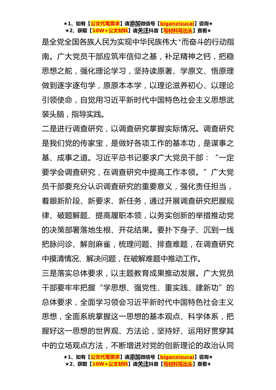 ★1、如有【公文代笔需求】请添加微信号【biganzisucai】咨询★★2、获取【10W+公文材料】请关注抖音【写材料写出头】查看★最新关于主题教育研讨材料根据学习安排,我于近期深入学习、深刻领会党的二十大精神。“这次主题教育不划阶段、不分环节,要把理论学习、调查研究、推动发展、检视整改贯通起来,有机融合一体推进。”在**召开的学习贯彻习近平新时代中国特色社会主义思想主题教育工作会议上,习近平总书记对开展主题教育的方式方法作了部署,强调要以解决实际问题、取得实际效果为出发点和落脚点,为各地区各部门各单位扎实开展主题教育工作规划了清晰路径、提供了根本遵循必将有力推动全党主题教育走深走实。“理论学习、调查研究、推动发展、检视整改”这一“*字方针”,成为开展主题教育的制胜法宝。下...