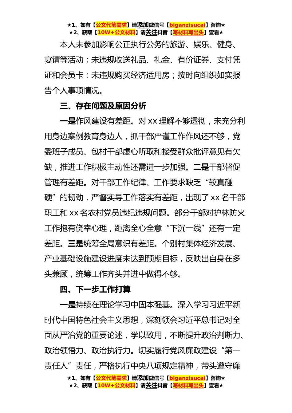 ★1、如有【公文代笔需求】请添加微信号【biganzisucai】咨询★★2、获取【10W+公文材料】请关注抖音【写材料写出头】查看★纪委全会上的述责述廉报告根据会议安排,现将xx年工作述责述廉如下。一、党风廉政建设主体责任落实情况一是带头落实党委主体责任。严格履行党风廉政建设“一岗双责”,始终将党风廉政建设和中心工作同部署、同推进。全年共召开党风廉政建设专题会议*,集中听取分管领导汇报党风廉政建设工作推进情况*。开展廉政专题党课*,谈心谈话*次,及时指出干部工作、思想问题,巩固干部廉洁意识。二是坚持“问症于民”。召开“阳光问廉”坝坝会*,收集群众反映强烈的突出问题*条,均已解答并整改。通过党建月会收集研判处理社情民意,结合干部包片、党员包户的方式,全面开展党风廉政建设社会满意度...