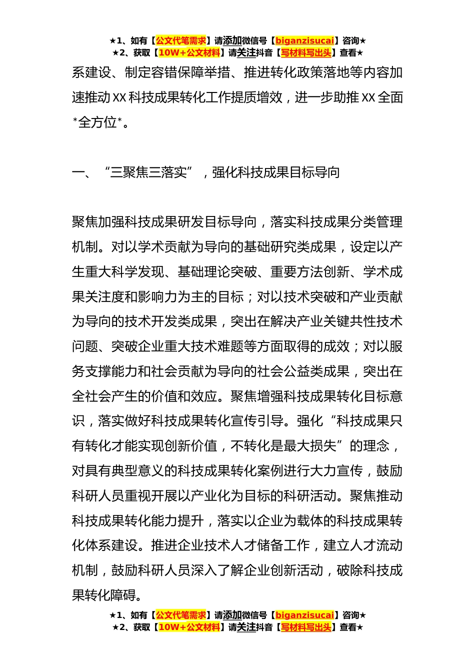 ★1、如有【公文代笔需求】请添加微信号【biganzisucai】咨询★★2、获取【10W+公文材料】请关注抖音【写材料写出头】查看★关于加速科技成果转化推动经济高质量发展情况报告习近平总书记在参加十四届全国人大一次会议XX代表团审议时强调:“要强化企业主体地位,推进创新链产业链资金链人才链深度融合,发挥科技型骨干企业引领支撑作用促进科技型中小微企业健康成长,不断提高科技成果转化和产业化水平,着力打造具有全球影响力的产业科技创新中心。”近年来,XX科技成果转化工作硕果累累,全省科技成果库汇集入库成果*项、在研项目**,国家认定的高新技术企业净增*家,技术合同成交额达到*3*元,同比增长*.*,重大科技攻关“揭榜挂帅”榜单*个项目*揭榜,带动企业出资2*亿元,占比*.*,成果产业化项目新增经济效...
