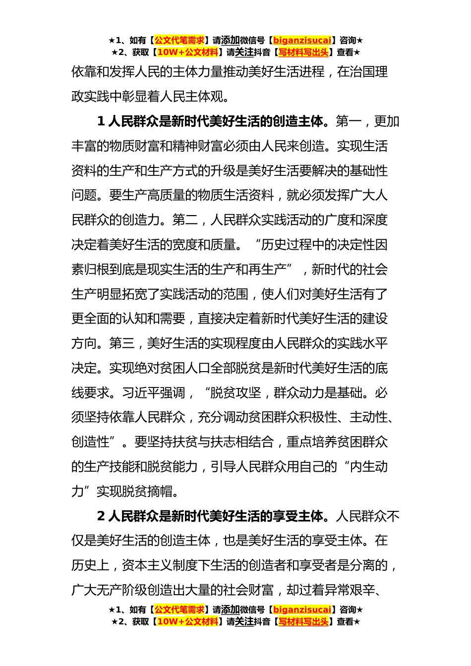★1、如有【公文代笔需求】请添加微信号【biganzisucai】咨询★★2、获取【10W+公文材料】请关注抖音【写材料写出头】查看★党课:新时代中国共产党美好生活思想的核心内容带领人民创造更加幸福美好的生活是中国共产党的初心使命与责任担当,也是中国特色社会主义价值原则的根本体现,更是中华民族伟大*历史伟业的价值归宿和最终落脚点。“美好生活”既是一个不断生成、发展和完善的历史性概念,又是一个不断发展和进阶以趋向无限美好的历史性过程。新时代,中国共产党把实现人民对美好生活的向往作为奋斗目标,人民美好生活凸显为一条明线标定、调整、检验着党和国家的一切政策和行动。立足新的时代特点,站在实现中华民族伟大*的高度,中国共产党坚持以人民为中心,从主体论、目的论、动力论、保障论等方面构筑...