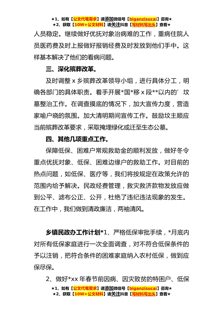 乡镇民政办工作计划范文借鉴