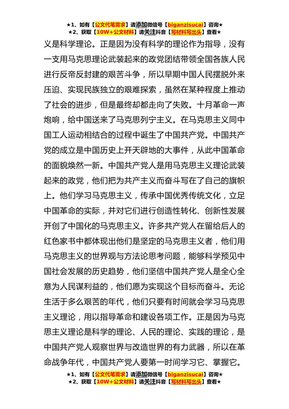 ★1、如有【公文代笔需求】请添加微信号【biganzisucai】咨询★★2、获取【10W+公文材料】请关注抖音【写材料写出头】查看★关于红色家书主题党课讲稿红色家书作为革命时期的特殊产物,特指在*主主义革命时期和社会主义革命和建设时期,家人亲友之间来往的信件,其中包含着正己、修身、齐家、治国等中华传统文化的精华,发人深省;饱含着热爱党、热爱祖国、热爱家乡、辛勤劳动、艰苦奋斗等或热烈、或质朴的情感,令人动容;闪烁着追求真理、公平正义、诚信友爱、无私奉献的中华民族传统美德的光辉,催人奋进。红色家书对于教育广大党员干部坚守共产党人的初心使命、坚定共产党人的理想信念、加强共产党人的作风建设具有重要的价值。一、红色家书有助于广大党员干部更加坚定马克思主义信仰作为无产阶级的革命领袖,...