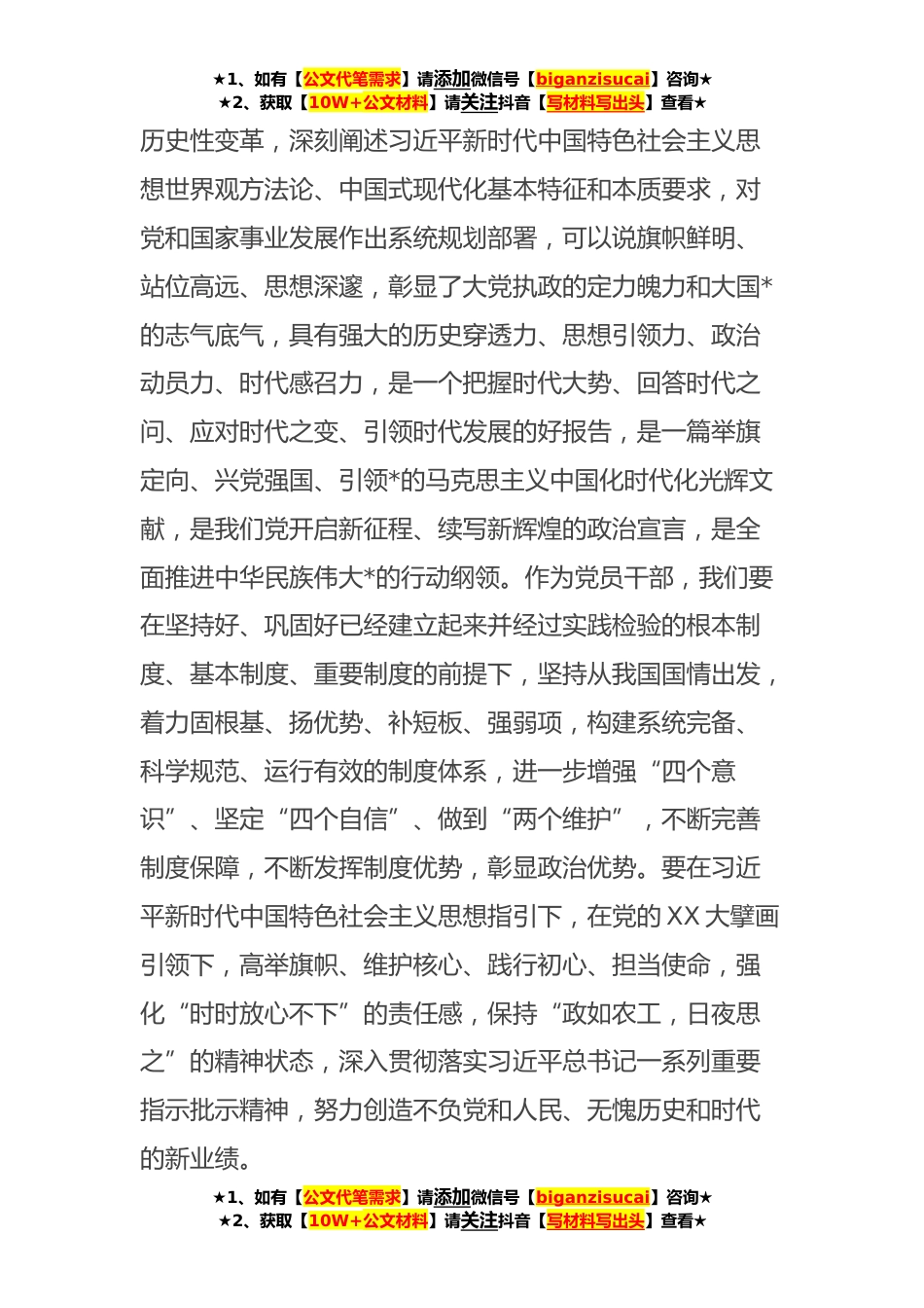 ★1、如有【公文代笔需求】请添加微信号【biganzisucai】咨询★★2、获取【10W+公文材料】请关注抖音【写材料写出头】查看★X乡理论学习中心组发言提纲乡党委委员、武装部部长、乡人民政府副乡长XXX各位领导,同志们:根据会议安排,下面,我结合自己的工作实际和学习思考,围绕发言主题作简要发言。党的XX大的胜利召开,是在全党全国各族人民迈上全面建设社会主义现代化国家新征程、向第二个百年奋斗目标进军的关键时刻召开的一次十分重要的大会。党的XX大报告展示了以习近平同志为核心的党中央引领新时代中国特色社会主义的理论成果、实践成果、创新成果,提出了一系列具有开创主义的新理论、新思想、新战略,为实现中华民族*大业提供了思想指引和行动指南。作为党员干部,我们必当以高度的政治责任感、饱满的学...