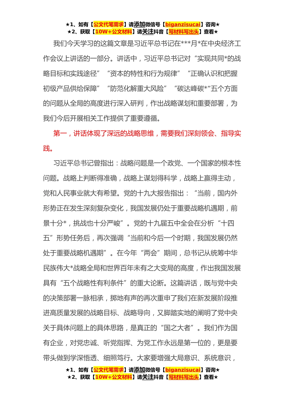 ★1、如有【公文代笔需求】请添加微信号【biganzisucai】咨询★★2、获取【10W+公文材料】请关注抖音【写材料写出头】查看★党委中心组**年第七次集体学习主持词同志们:今天,我们举行党委中心组**年第七次集体学习会,重点对习近平总书记《正确认识和把握我国发展重*论和实践问题》进行专题学习。下面,请×××同志进行领学。……好,下面进行交流研讨。首先请×××同志就“正确认识和把握实现共同*的战略目标和实践途径”进行专题发言。……下面,请×××同志就“正确认识和把握防范化解重大风险”进行专题发言。……下面,请×××同志就“正确认识和把握碳达峰碳*”进行专题发言。……刚才,我们对习近平总书记《正确认识和把握我国发展重*论和实践问题》进行了专题学习,三位同志围绕各自主题,结合分管...