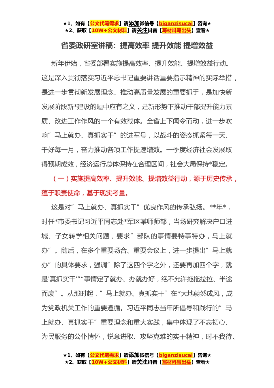 省委政研室讲稿:提高效率 提升效能 提增效益