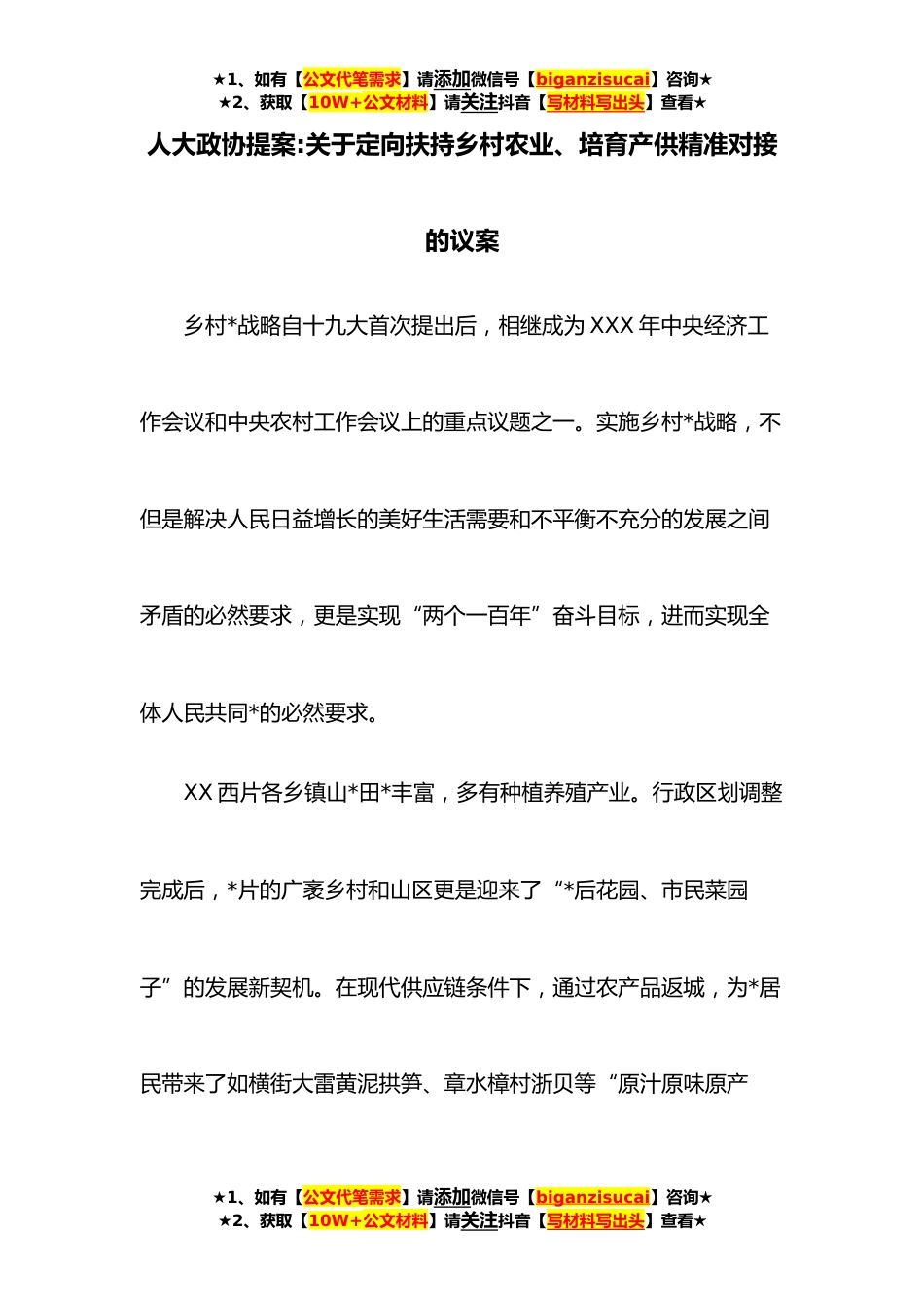 人大政协提案关于定向扶持乡村农业、培育产供精准对接的议案