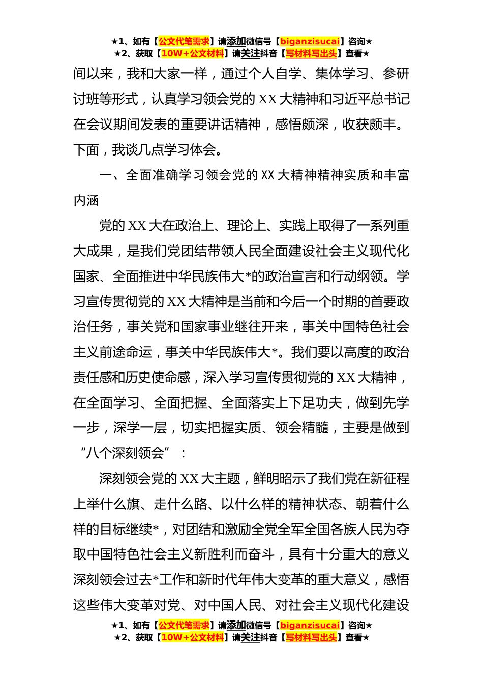 ★1、如有【公文代笔需求】请添加微信号【biganzisucai】咨询★★2、获取【10W+公文材料】请关注抖音【写材料写出头】查看★在党组理论学习中心组集中学习会上的主持讲话同志们:今天,我们召开第四季度理论中心组学习会,主要任务是深入学习贯彻党的XX大和党的XX届X中全会精神,全面贯彻落实习近平总书记在大会期间系列重要讲话特别是参*代表团讨论时的重要讲话精神,按照党中央、自治区决策部署,凝心聚力建设富强民主明的XXXXX,奋力谱写新时代中国特色社会主义壮美XXX。首先,进行第一项议程,传达学习贯彻党的XX大精神。……下面,进行第二项议程,请XX、XX、XXX等*同志就学习贯彻党的XX大精神,结合分管工作进行发言(时间控制*钟)。……下面,进行第三项议程,由我作总结学习讲话。大家紧扣学习主题,坚持...