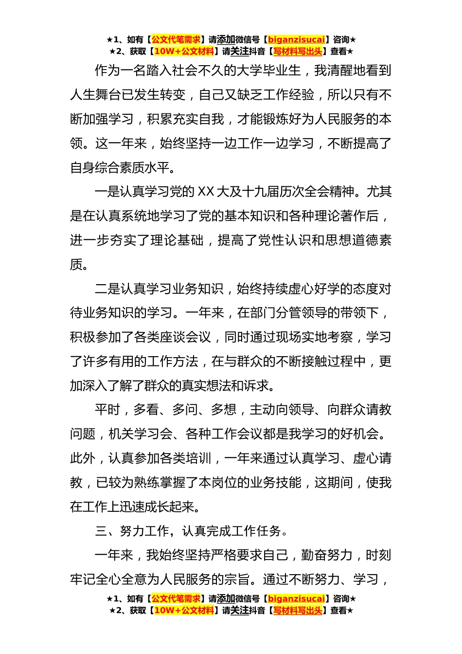 ★1、如有【公文代笔需求】请添加微信号【biganzisucai】咨询★★2、获取【10W+公文材料】请关注抖音【写材料写出头】查看★公务员(办公室)年终个人工作总结(**)我叫XX,出生于*XX年XX月,中共党员,毕业于XX大学,XX学位。XX年参加XX公务员考试,有幸被录用到XX单位,成为其中一员,现任办公室文员职务。自参加工作以来,我热衷于本职工作,严格要求自己,摆正工作位置,时刻持续谦虚、谨慎、律己的态度,在领导的关心栽培和同事们的帮忙支持下,始终勤奋学习、用心进取,努力提高自我,始终勤奋工作,认真完成任务,履行好岗位职责,各方面表现优异,得到了领导和群众的肯定。现将这一年来的学习、工作状况简要总结如下:一、严于律己,自觉加强党性锻炼,政治思想觉悟得到提高。一年来,始终坚持运用马克思...