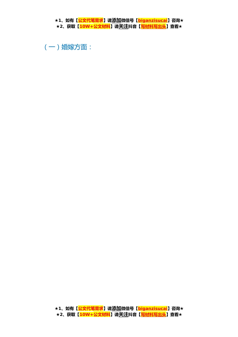 ★1、如有【公文代笔需求】请添加微信号【biganzisucai】咨询★★2、获取【10W+公文材料】请关注抖音【写材料写出头】查看★关于推动农村移风易俗工作的调研报告《荀子·乐论》曰:“乐者,圣人之所乐也,而可以善民心,其感人深,其移风易俗,故先王导之以礼乐而*睦。”每逢新春佳节,长年奔波在外的乡党们,都会夹挤在千百万迁徙的队*,像候鸟一样回到父母妻子、亲朋好友的身边,回到梦牵魂绕、有着万般乡愁和记忆的故乡。为了进一步推动全县干部群众移风易俗树立文明新风,引导建立勤俭节约、文明高尚的生活方式,笔者借假日走亲访友之机,对农村移风易俗推进工作情况调研报告如下:一、背景近年来,伴随着经济社会的快速发展,人民群众生活质量普遍提高,但日常生活中的客事办理名目也越来越多、规模越来越大...