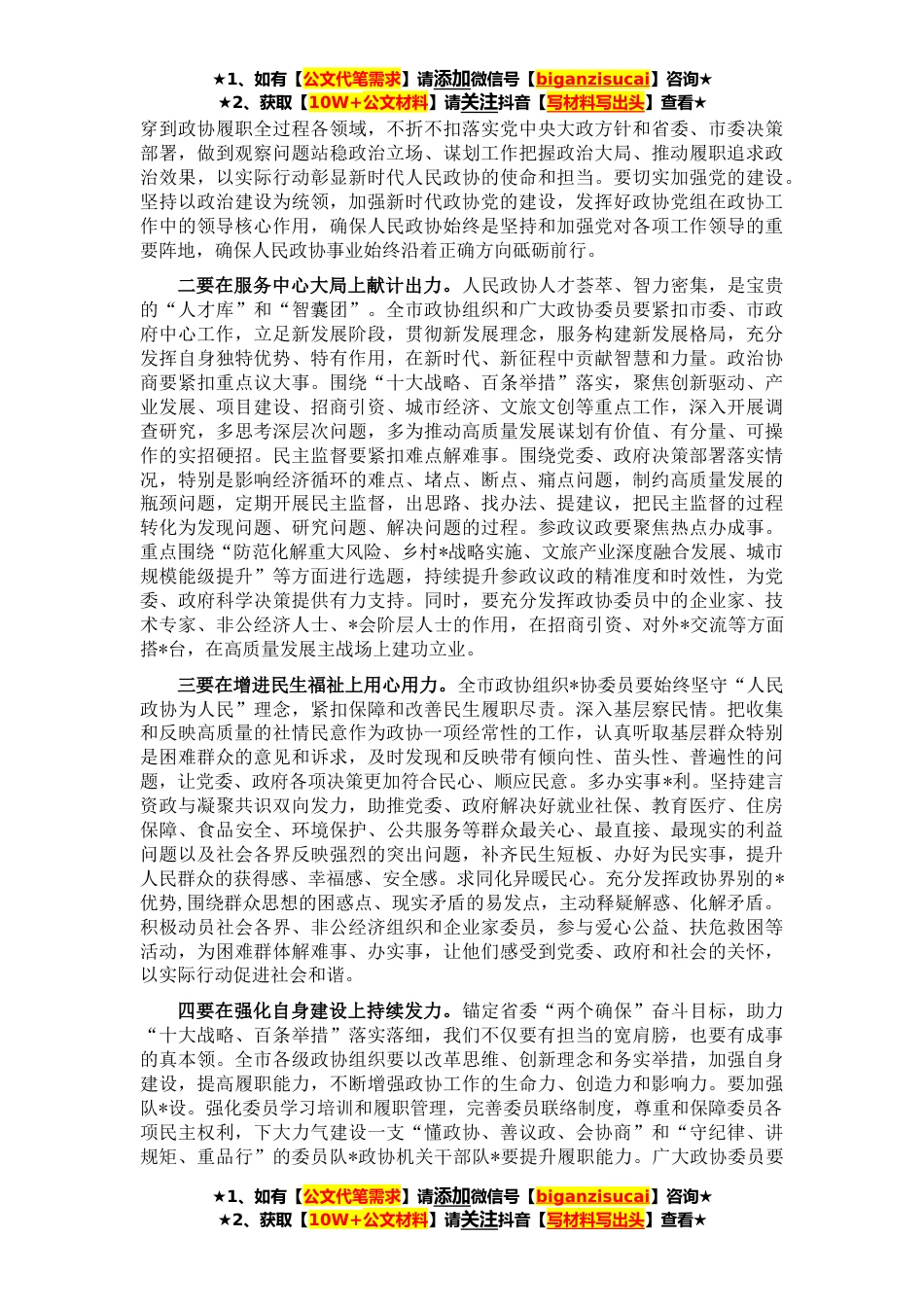 ★1、如有【公文代笔需求】请添加微信号【biganzisucai】咨询★★2、获取【10W+公文材料】请关注抖音【写材料写出头】查看★今天,政协第十三届*市委员会第五次会议隆重开幕。这次会议是在全市上下深入学习贯彻党的十九届六中全会和中央经济工作会议精神,贯彻落实省委十一届二次全会暨经济工作会议精神、市委十二届二次全会暨经济工作会议精神的关键时刻,召开的一次十分重要的大会。开好这次大会,对于我市加快推进高质量发展、全面建设社会主义现代化活力古都出彩*、以优异成绩迎接党的二十大胜利召开,具有十分重要的意义。在此,受家健同志委托,我代表中共*市委,向大会的召开表示热烈的祝贺!向全体政协委员和与*志致以诚挚的问候!各位委员、同志们!**是党和国家历史上具有里程碑意义、必将载入史册的一...